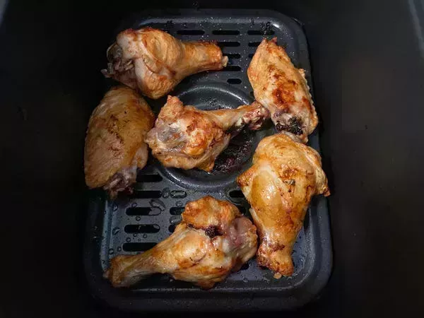 Las alitas cocinadas estaban jugosas y tenían una textura ligeramente crujiente por la freidora de aire.