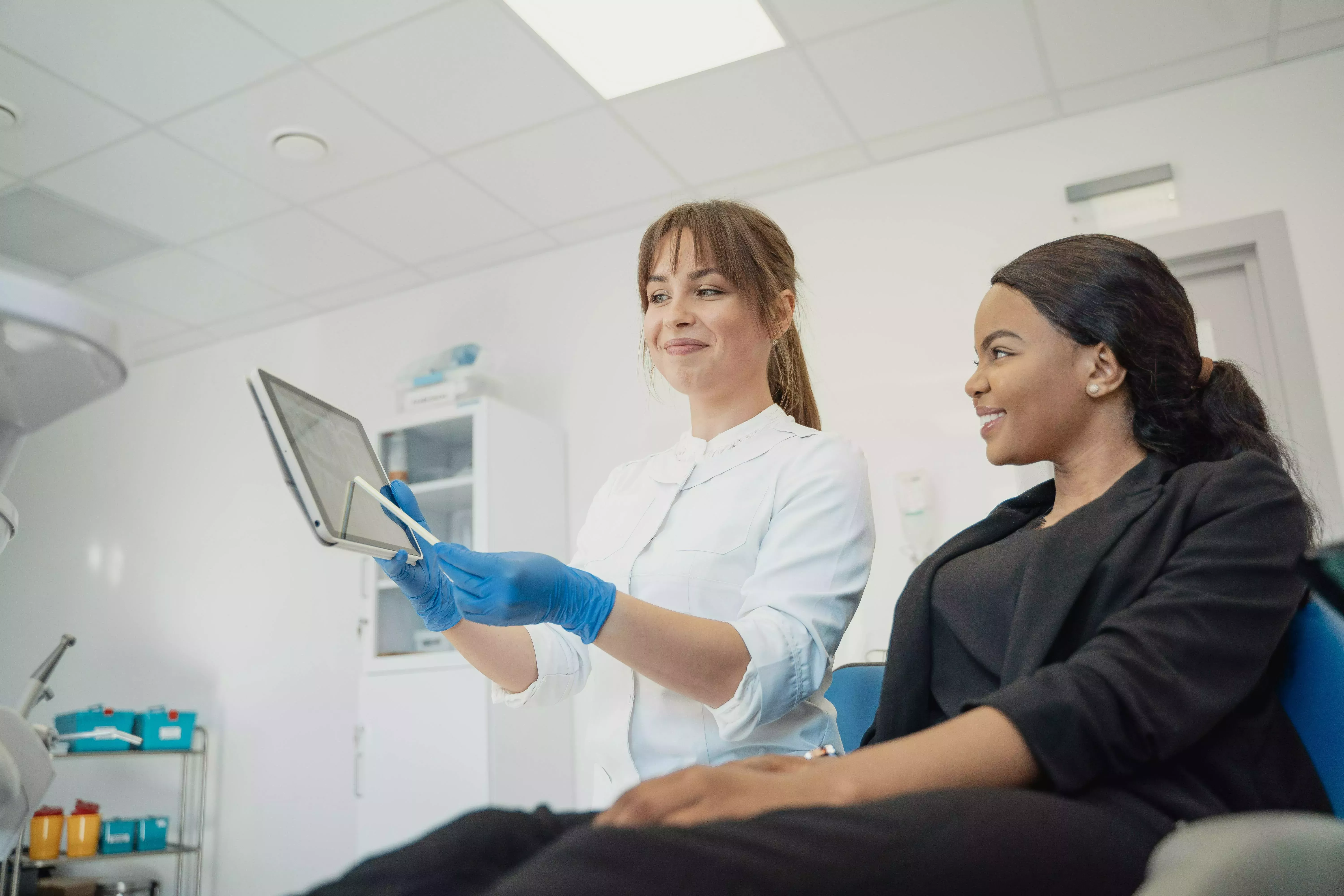 Evaluación inicial: El odontólogo realiza un análisis detallado de la salud bucal del paciente, tomando radiografías y escaneos 3D para planificar la colocación del implante.