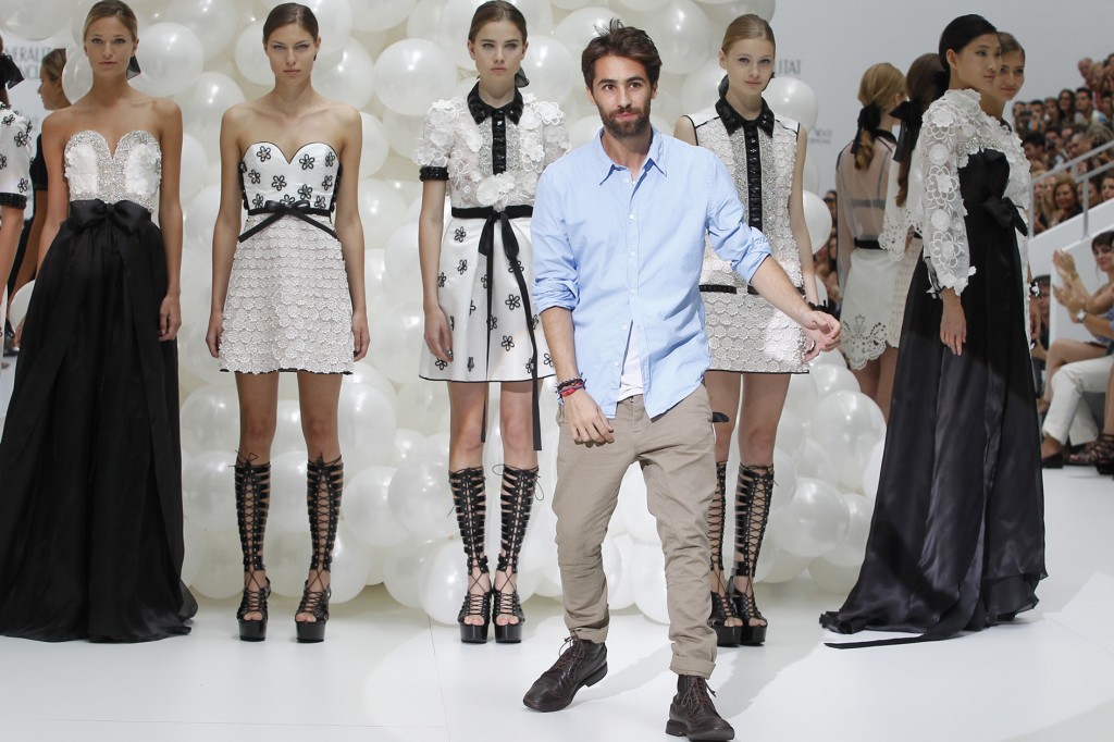 En la edición pasada fue el ganador del premio a la mejor colección y para este septiembre ha presentado Hello… Kittie! Una colección dulce, chic y con ese punto canalla que tanto nos gusta. La inspiración de Hello…Kittie son esas chicas de inocencia desconcertante, muy femeninas y coquetas que tienen una sexualidad desbordante y perversa. Juan Vidal se ha inspirado en las revistas de adolescentes que destacan el momento BFF y la feminidad clásica para conquistar al hombre… También el cine de los 60 y 70 de Polanski y Pasolini, con una sexualidad explícita. Y como no el arte de vanguardia con referentes como Jeff Koons y John Currin.