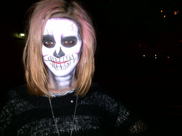 Si este año os queréis disfrazar de este huesudo personaje, una buena opción sería copiarle el maquillaje a Katy, que es sensacional y terrorífico.