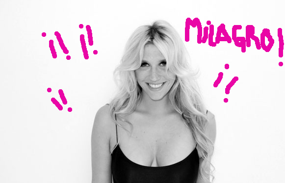 ¡Oh maravilla! Mis ojos no pueden estar engañándome. Me los froto y me los froto y no desaparece. Deber ser cierto. Por primera vez en la vida (de estrella del pop) de Ke$ha tiene una apariencia de persona normal, no tiene los labios azules, el maquillaje de los ojos corrido. Casi voy a llorar de la emoción.