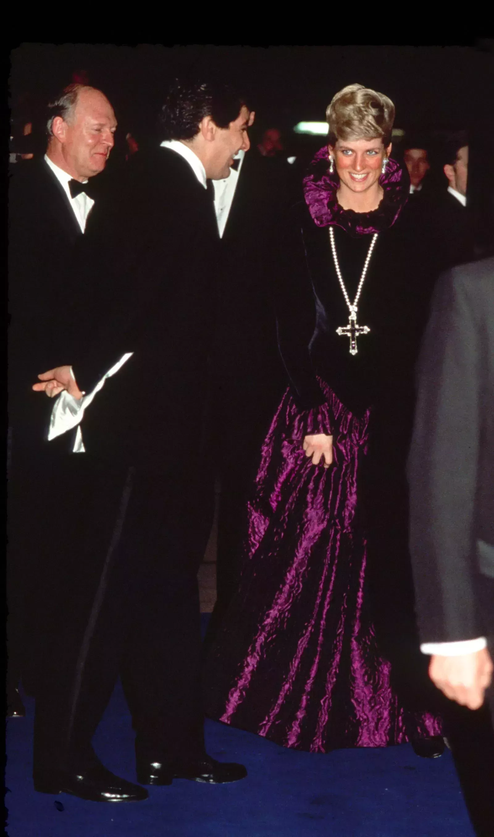 Como referencia, aquí está Diana con el collar en 1987. No podrían llevar peinados más opuestos, ¿verdad? El corte corto con plumas característico de Diana estaba en su apogeo en los 80; en los 90, hizo la transición a un estilo pixie largo más elegante. Probablemente nunca veamos a Kardashian con el peinado de Diana, pero es divertido imaginar su versión del look de los 80. La estrella combinó el collar con un vestido blanco de Gucci ajustado y escotado y dos collares de perlas.