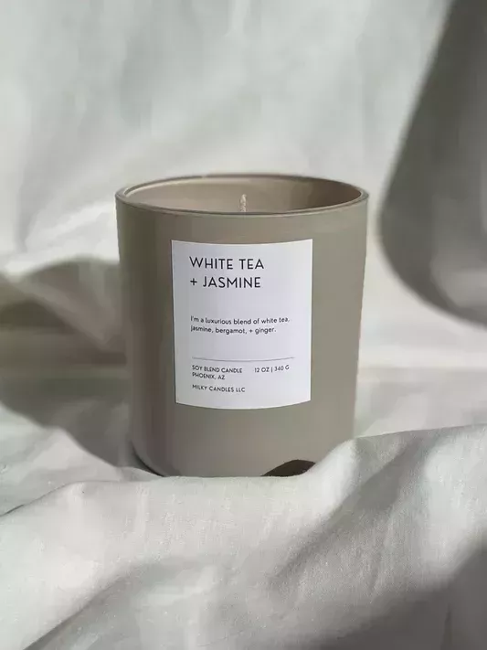 Para un momento fresco y especiado, enciende esta vela de jazmín, té blanco, bergamota y jengibre. Además, dediquemos un momento a reconocer lo chic que es el recipiente.