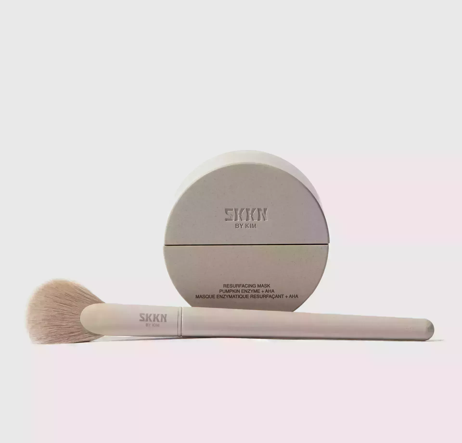 "Mi nueva SKKN BY KIM Resurfacing Mask es el regalo perfecto para estas fiestas. Aprovecha el poder de las enzimas de calabaza fermentada con ácidos glicólico y láctico para ayudar a mejorar la textura de la piel y el cutis, mientras que la glicerina actúa para retener la humedad y conseguir un brillo hidratado post-facial instantáneo. Es ideal para usar antes de cualquier fiesta navideña".