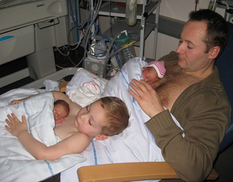 Hacer el piel con piel con los bebés ayudó a esta familia a establecer “estrechos vínculos entre ellos”, según afirma esta madre. Sin duda, un tierno momento que no olvidarán nunca.
