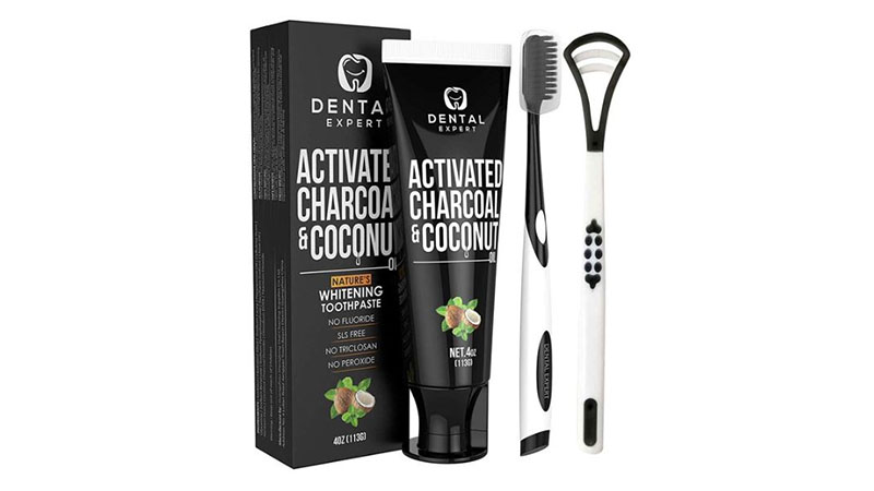 Los dientes frescos y el aliento fresco están en orden cuando se usa la pasta dental de carbón activado y coco de Dental Expert. El carbón activado extrae las manchas y las bacterias de los dientes y la boca, mientras pule suavemente los dientes y fortalece el esmalte. Además, los aceites de coco y menta ayudan a combatir las bacterias y te dejan con una sensación de menta fresca. Los ingredientes 100% naturales son seguros de usar diariamente. El kit también viene con un cepillo de dientes de carbón y un raspador de lengua para ayudar a deshacerse de la comida y las bacterias de la lengua que el cepillado no puede eliminar.