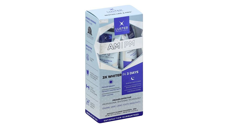 Cambia tu pasta de dientes normal por la pasta de dientes Luster Premium AM/PM, y tus dientes podrían ser tres veces más blancos en tres días. Usa la pasta de la mañana para tener un aliento fresco y unos dientes más blancos al instante durante el día. Luego, durante la noche, deja que la pasta de la noche haga su magia, quitando las manchas profundas y fortaleciendo el esmalte. Blanquea tus dientes nacarados en poco tiempo con el uso diario para obtener mejores resultados.