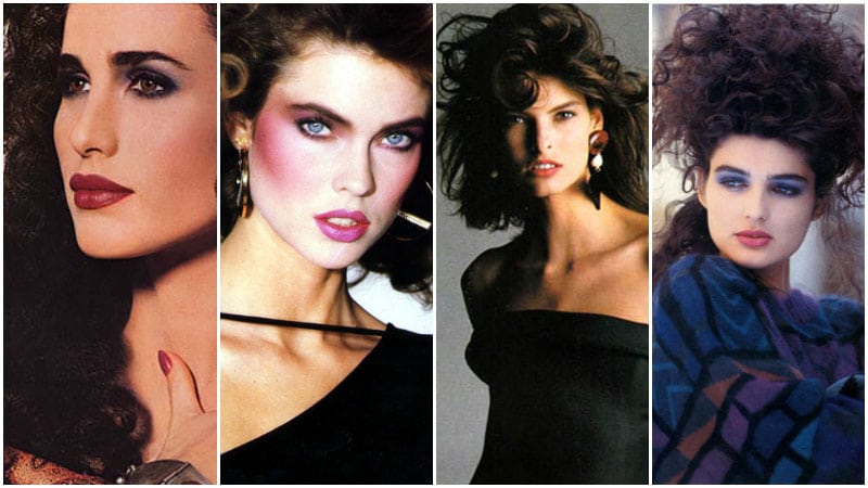 A juego con la moda excesiva de la década, el cabello y el maquillaje de los 80 también fueron intensos. Durante la década el pelo era predominantemente grande y salvaje. El volumen completo era el look que todos querían, y los rizos u olas extremas eran una gran manera de conseguirlo. No importaba si las mujeres llevaban el pelo hacia arriba o hacia abajo, era grande e indudablemente lleno de laca. De igual manera, la composición de la década fue igual de audaz. En particular, la sombra de ojos de colores intensos era un aspecto de belleza esencial, pero el rubor brillante y los lápices labiales atrevidos también eran populares.