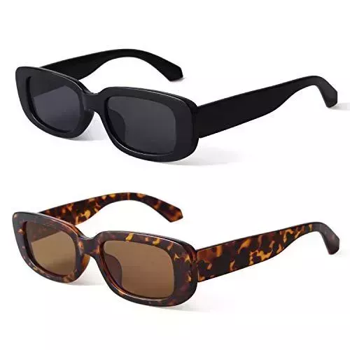 Ahora 29% de descuento Los estilos retro han vuelto, y esta vez, para quedarse. Estas gafas de sol de montura rectangular son un accesorio sencillo que merece la pena añadir a tu armario de primavera. El pack de dos unidades ofrece un diseño liso en negro y una opción con estampado de concha de tortuga que los críticos valoran muy positivamente por combinar bien con diferentes prendas.