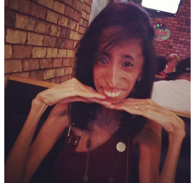 Casos como el de Lizzie Velasquez hay pocos en el mundo. Su aspecto se debe a un extraño síndrome que hace que no pueda ganar peso, además, Lizzie, es ciega de un ojo, y su piel envejecida llama a pensar que tuviera más edad de la que tiene, pues Velasquez, ahí donde la veis, sólo tiene 24 años.