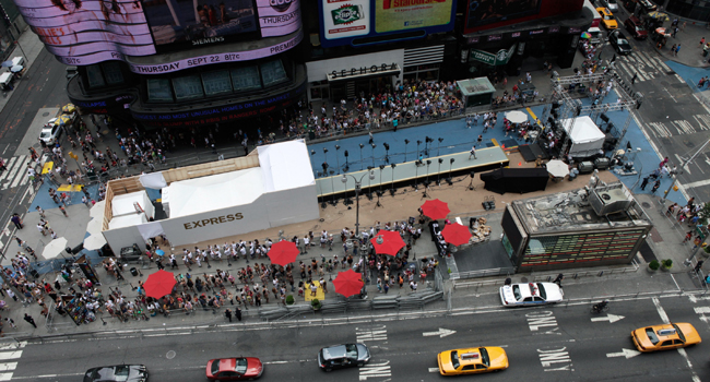 Un total de 1.243 personas se acercaron el 23 de julio hasta Times Square para sacar su Linda Evangelista interior y poder desfilar con camisetas y bolsas de la tienda. Y es de agradecer que la gente se implicase tanto, pues el calor lo complicaba todo un poco más...