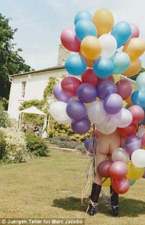 Y parece que Marc Jacobs me ha leído la mente a la hora de proponer esta foto para la publicidad de la marca. Elle Fanning poniendo cara de niña-abuela, mal. Un hombre haciendo un calvo rodeado de globos, bien.