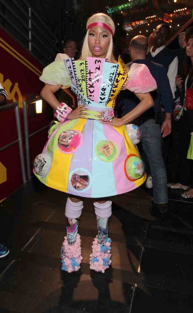 Nicki Minaj también acudió a los Kids' Choice Awards ¡cómo podía ella faltar! y para estar a acorde con el evento infatil-juvenil atracó una juguetería para hacerse su modelito. En concreto, sus botas.