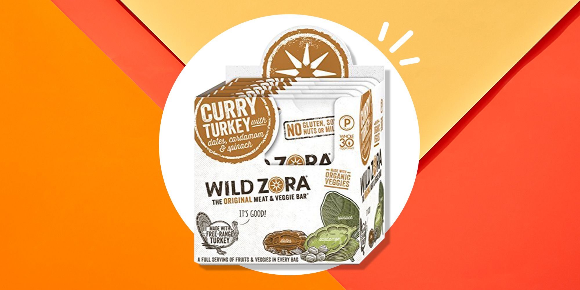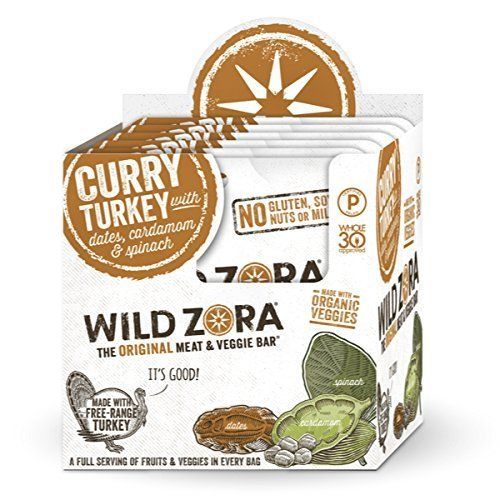 6 barras de carne y vegetales de pavo al curry Wild Zora