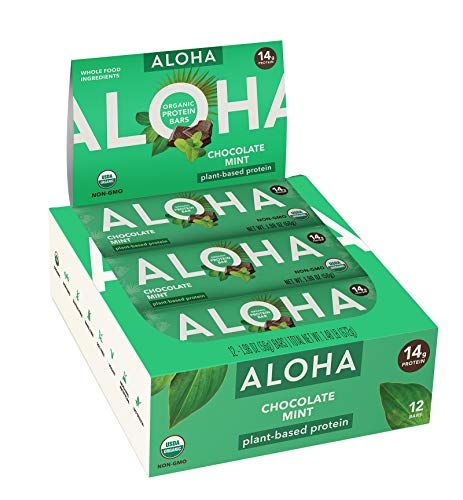 11 Barras de proteína a base de plantas orgánicas de chocolate y menta ALOHA