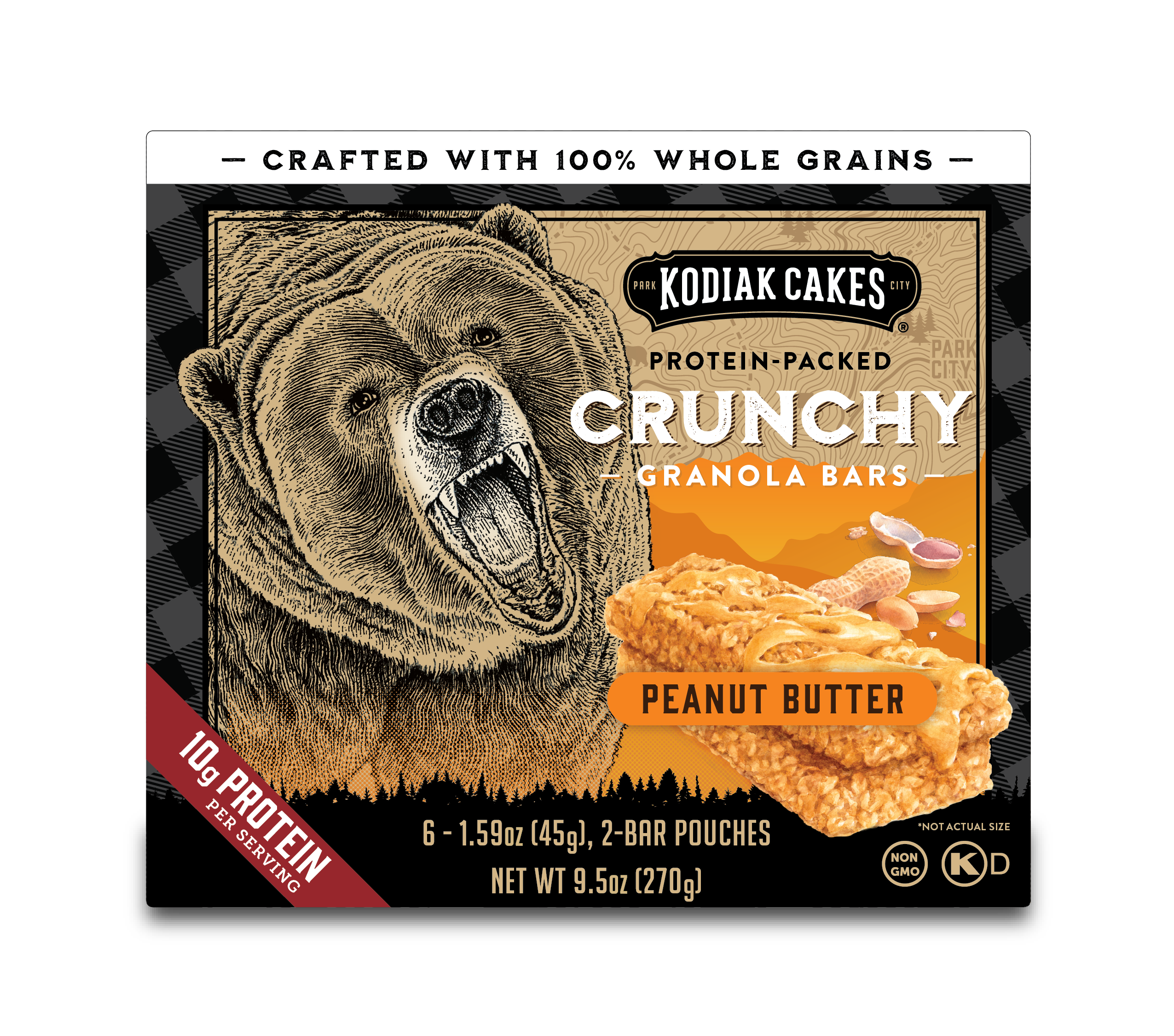 5 barras de granola crujientes de mantequilla de maní de los pasteles Kodiak.
