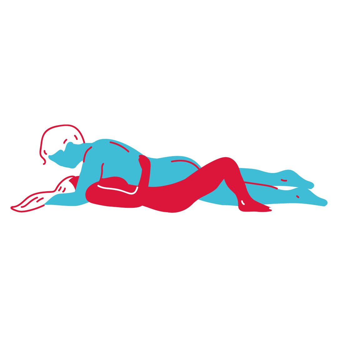 Hágalo: Ambos se acuestan de costado, mirando en la misma dirección. Levanten ligeramente las rodillas mientras su compañero se desliza por detrás de la pelvis y entra en ustedes por detrás en posición de cuchara.