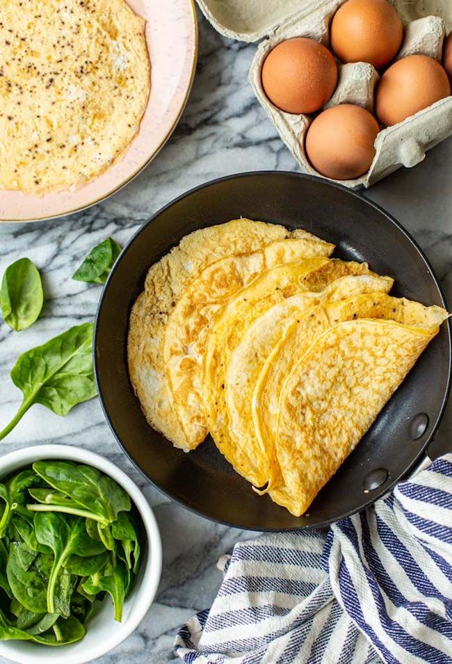 Piensa en estos como tortillas hechas con huevos en lugar de harina. Puedes rellenar estos wraps con lo que quieras, desde frijoles negros hasta espinacas y queso feta. Así que, básicamente, puedes utilizarlos para crear infinidad de platos.