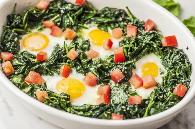 Perfecto para las personas que cuidan su consumo de calorías, este plato combina huevos al horno con sus verduras favoritas. Siempre puedes sustituir las espinacas por col rizada o acelgas.
