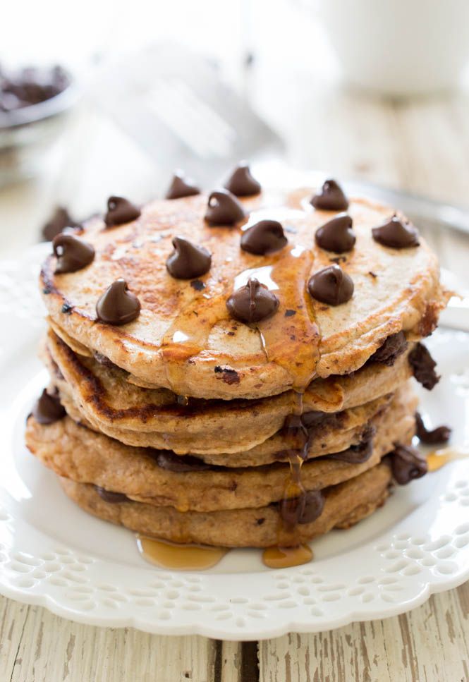 Hechas con trigo integral y linaza, estas tortitas con chispas de chocolate satisfarán tu apetito y tus ganas de comer. Añade un poco de fruta a un lado y es dos pulgares arriba para un capricho sin culpa, ¿verdad?