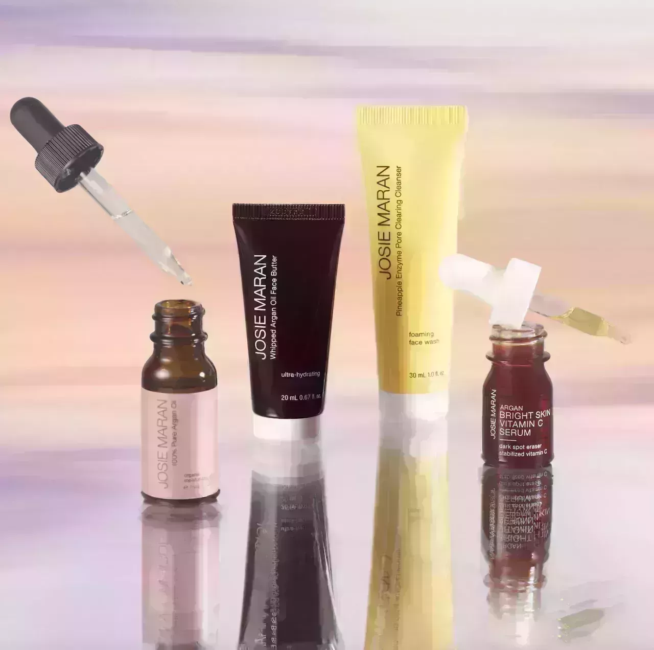 kit deJosie Maran, apto para viajes, viene en una elegante bolsa blanca para facilitar su transporte. En su interior caben los cuatro artículos del set -minis de la manteca facial de aceite de argán batido de la marca, el sérum de vitamina C Argan Bright Skin, el limpiador de poros con enzimas de piña y el aceite de argán 100% puro- y mucho más. Feliz viaje.