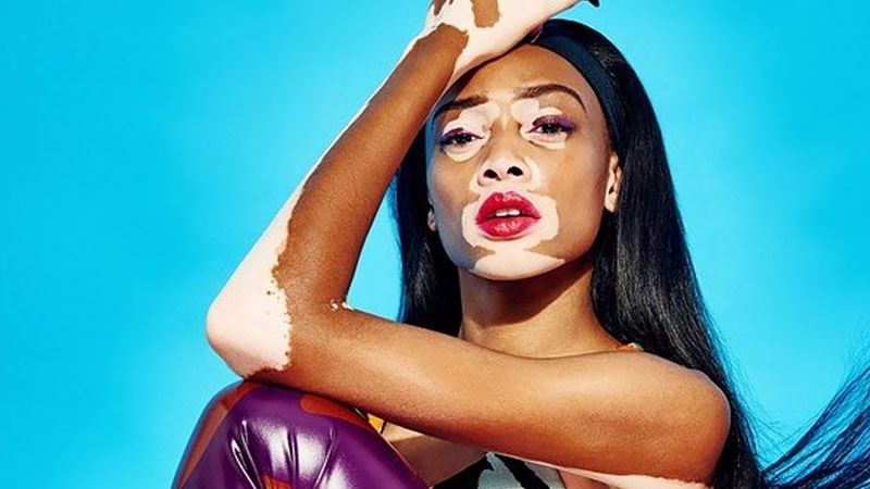 Winnie Harlow es una modelo ampliamente reconocida por su afección cutánea, el vitíligo. Llegó a la fama como concursante en America's Next Top Model. Tras su eliminación de la exposición, Harlow modeló para la marca española de ropa Desigual y pronto se convirtió en su representante oficial de la marca. También ha modelado para revistas de moda como Dazed e i-D.