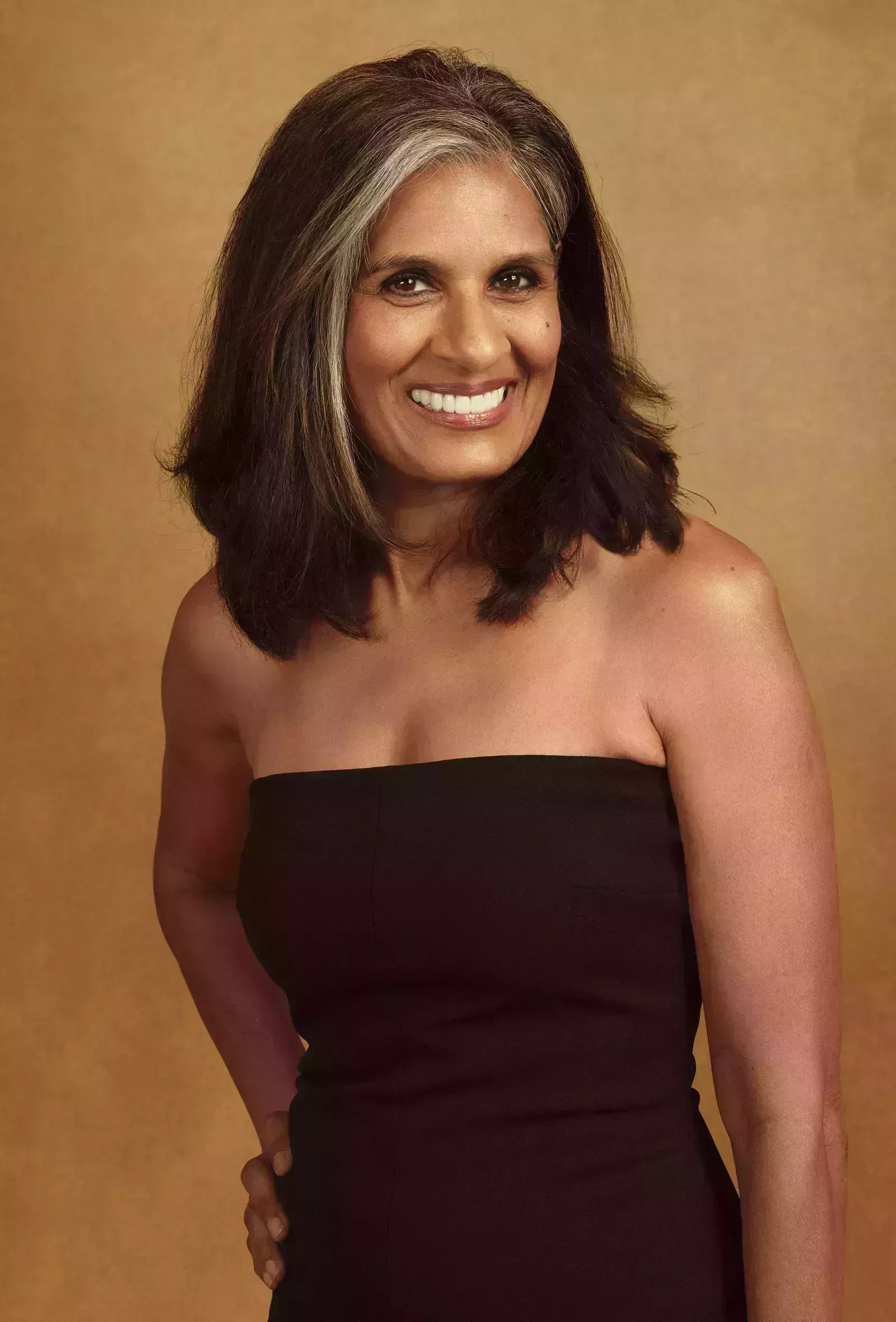 Sobre su rutina de cuidado de la piel: Lo primero que hago cuando entro en el cuarto de baño por la mañana es dejar correr agua fría. Dejo que se enfríe mucho y luego me lavo y me seco la cara. Cuando crecí en Sri Lanka, no teníamos mucho, así que siempre menos es más. Mi madre siempre nos hacía bálsamo de cúrcuma y nos daba aceite de coco. También molíamos judías mungo para hacer una pasta y usarla como mascarilla. Cuando llegué a Estados Unidos -llevo aquí más de 20 años- empecé a inclinarme por marcas más "naturales". Soy una gran fan de Aesop: Utilizo la Crema Hidratante Facial Perfecta y el Tratamiento Facial de Rosa Damascena.