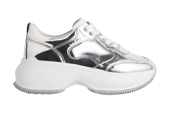 Otra marca que realza los metales en deportivas, Hogan mezcla estilo casual y plataforma para una zapatilla cómoda.