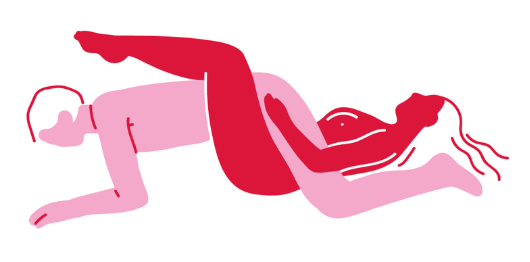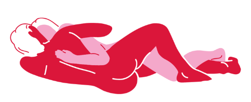 Hágalo: Acuéstese de lado a lado en la posición de cuchara y doble ligeramente las rodillas para que él pueda entrar en usted por detrás.