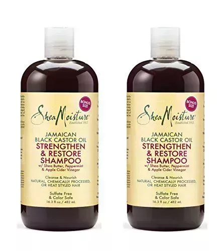 5 Shea Moisture Aceite de ricino negro de Jamaica Fortalecer y restaurar el champú con manteca de karité, menta y vinagre de sidra de manzana 16.3 fl oz. (482ml) (Paquete de 2)