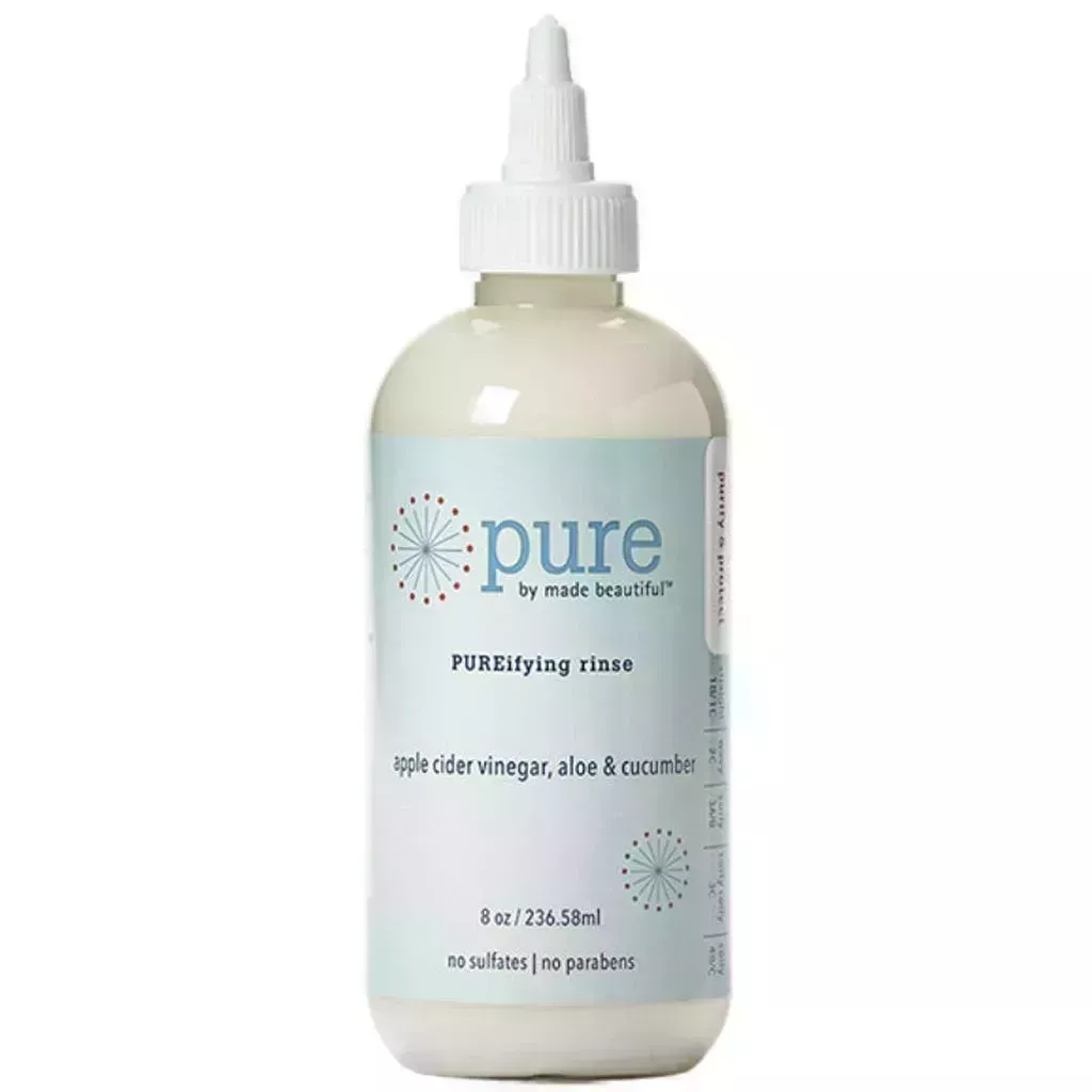 Considera la posibilidad de cambiar uno o dos días de tus champús semanales por un enjuague capilar, que se aplica como un champú pero puede ser menos secante. "Me gusta mucho el enjuague PUREifying de Made Beautiful: es una mezcla única de vinagre de sidra de manzana, aloe y pepino que ayuda al cabello a retener la humedad y estimula el cuero cabelludo", dice Farel.