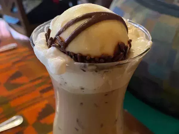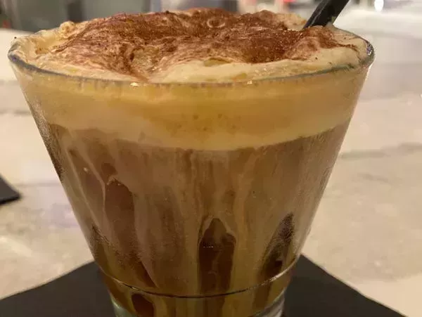 La bebida de café sin alcohol está elaborada con cerveza fría de Joffrey, miel, Falernum (jarabe con sabor a jengibre), fruta de la pasión y cítricos.