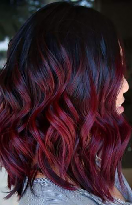 La técnica del ombre, que se basa en la palabra francesa que significa "sombreado", se utiliza para mezclar dos o más colores de cabello. Mientras que se usa frecuentemente para combinar rubio y moreno, también luce fantástico con el cabello rojo oscuro. Para las damas con raíces marrones oscuras o incluso negras, los ombre de medio largo y las puntas hacen que sea fácil conseguir el look rojo oscuro sin un color completo.