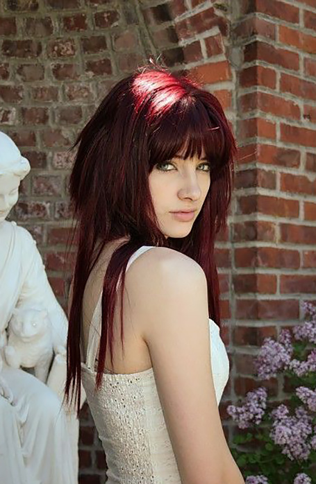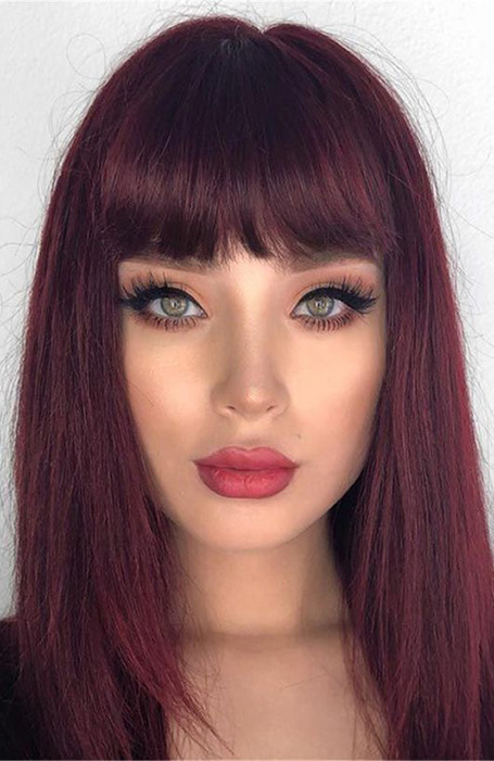 Para las mujeres que aman destacarse, el cabello rojo audaz es una necesidad. El cabello rojo llama la atención naturalmente ya que es el color de cabello más raro. Además, se asocia con personalidades apasionadas y ardientes. Para asegurarse de que todas las miradas están puestas en usted, elija un tono rojo oscuro que tenga un aspecto poco natural - piense en carmesí, granate y rubí.