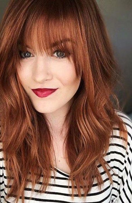 Las mechas de cobre son una gran manera de levantar el pelo rojo oscuro y darle una sensación fresca y veraniega. Dependiendo de dónde se coloquen, las piezas de bronce melocotón pueden usarse para enmarcar e iluminar el rostro. También añaden dimensión y movimiento a tu cabello. Sin embargo, es importante no ir demasiado ligero ya que las luces extremas pueden dar al cabello rojo oscuro un aspecto de "raya de tigre".