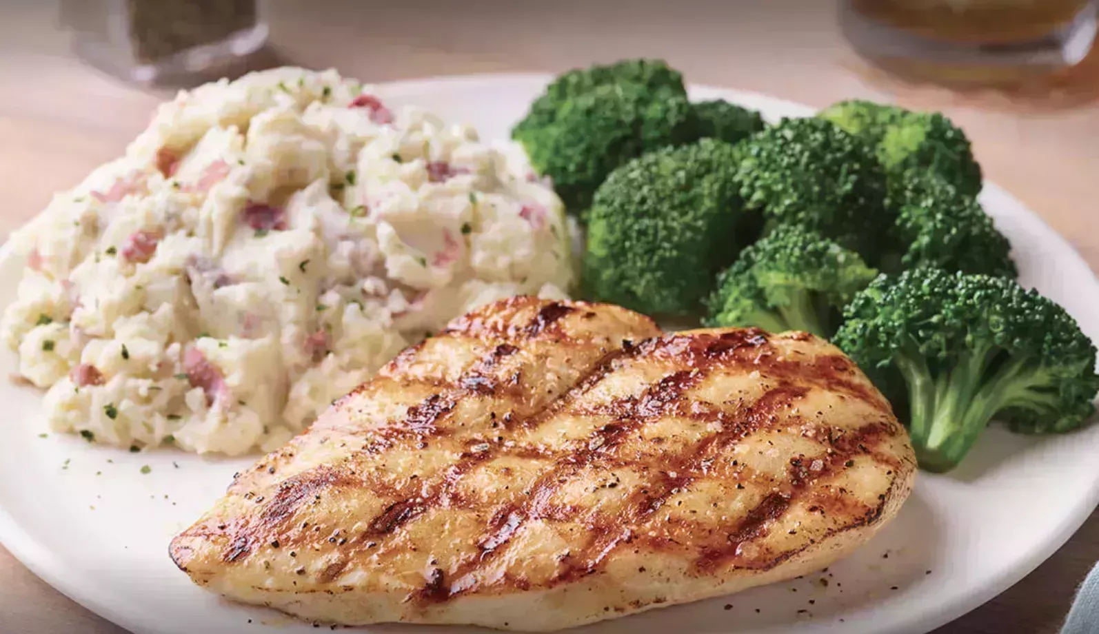 El pollo a la parrilla es una fuente excelente de proteínas magras, y el brócoli al vapor añade fibra y micronutrientes", dice Holtzer. Si has tomado un aperitivo con más carbohidratos y quieres reducirlos en tu plato principal, Holtzer sugiere que guardes la mitad del puré de patatas en una caja para llevar, ¡y que lo disfrutes al día siguiente!
