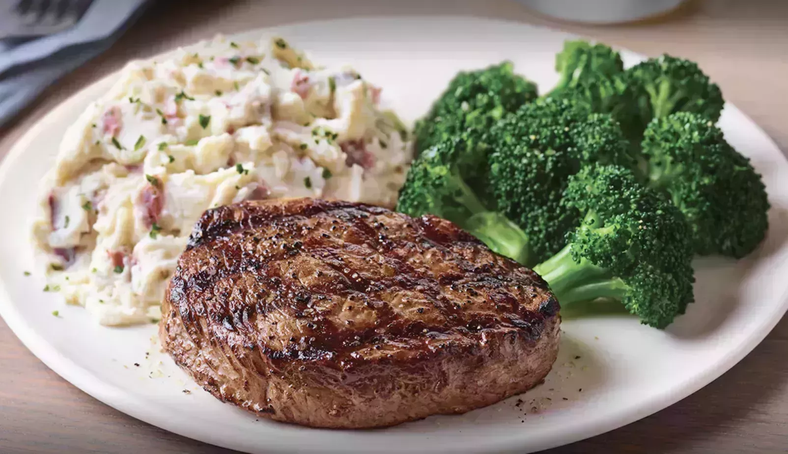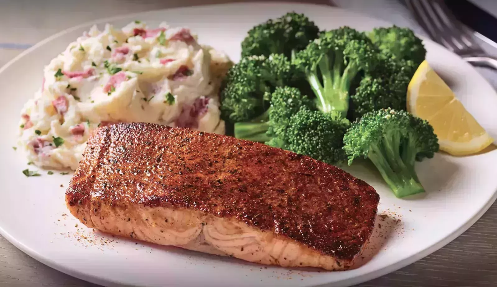 "Esta es una gran opción de plato principal rica en proteínas. El brócoli al vapor ofrece mucha fibra y micronutrientes, y el puré de patatas es el almidón", dice Holtzer.