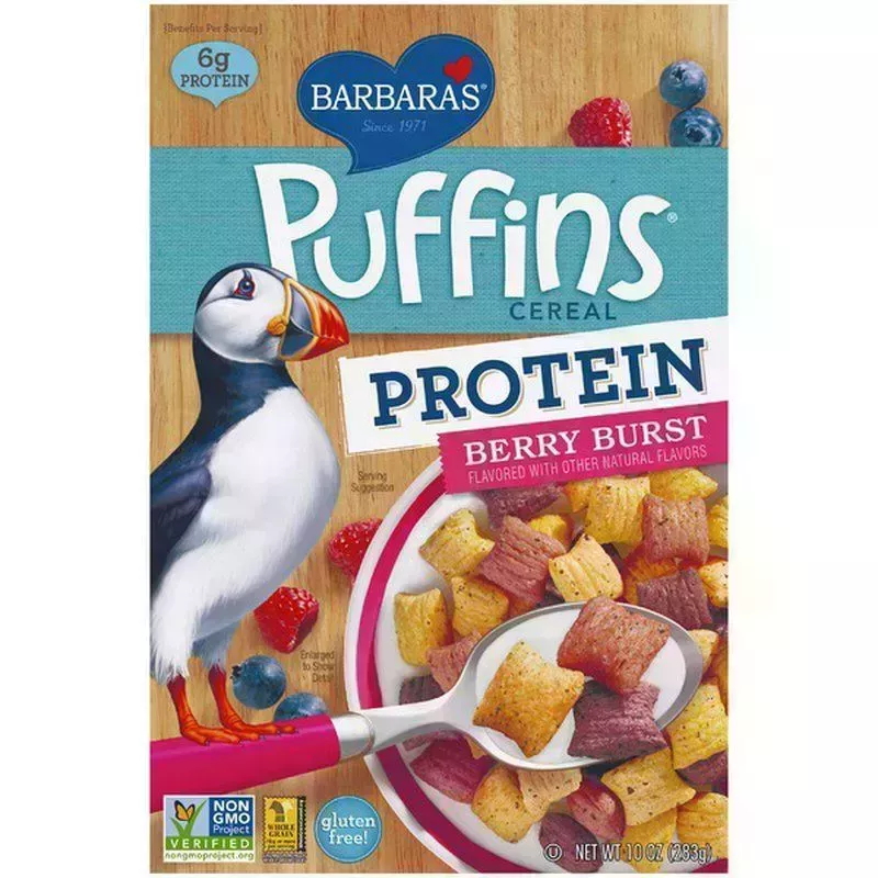 Publicidad - Sigue leyendo debajo 1 Mejor textura Barbara's Bakery Puffins Protein, Berry Burst