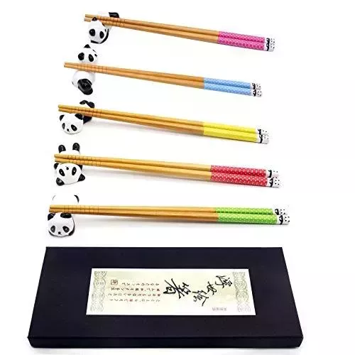Sí, esos son pequeños pandas que sostienen los palillos en su lugar. Y sí, estoy obsesionada con ellos tanto como tú. Hechos de bambú y mejorados con un diseño antideslizante, son claramente necesarios.