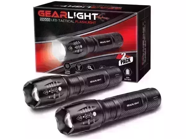 La linterna táctica LED GearLight S1000 combina las características que más desea en una linterna de mano, sobre todo una luz brillante y una buena duración de la batería. Alimentada por tres pilas AAA, la S1000 funciona durante más de diez horas seguidas sin necesidad de sustituir las pilas. También viene equipada con cinco modos diferentes, lo que le permite proporcionar una luz dispersa en un espacio más pequeño o crear un haz estrecho y apretado para su uso como foco. Una carcasa robusta y resistente al agua le permite sobrevivir en condiciones adversas, como temperaturas frías y fuertes tormentas.