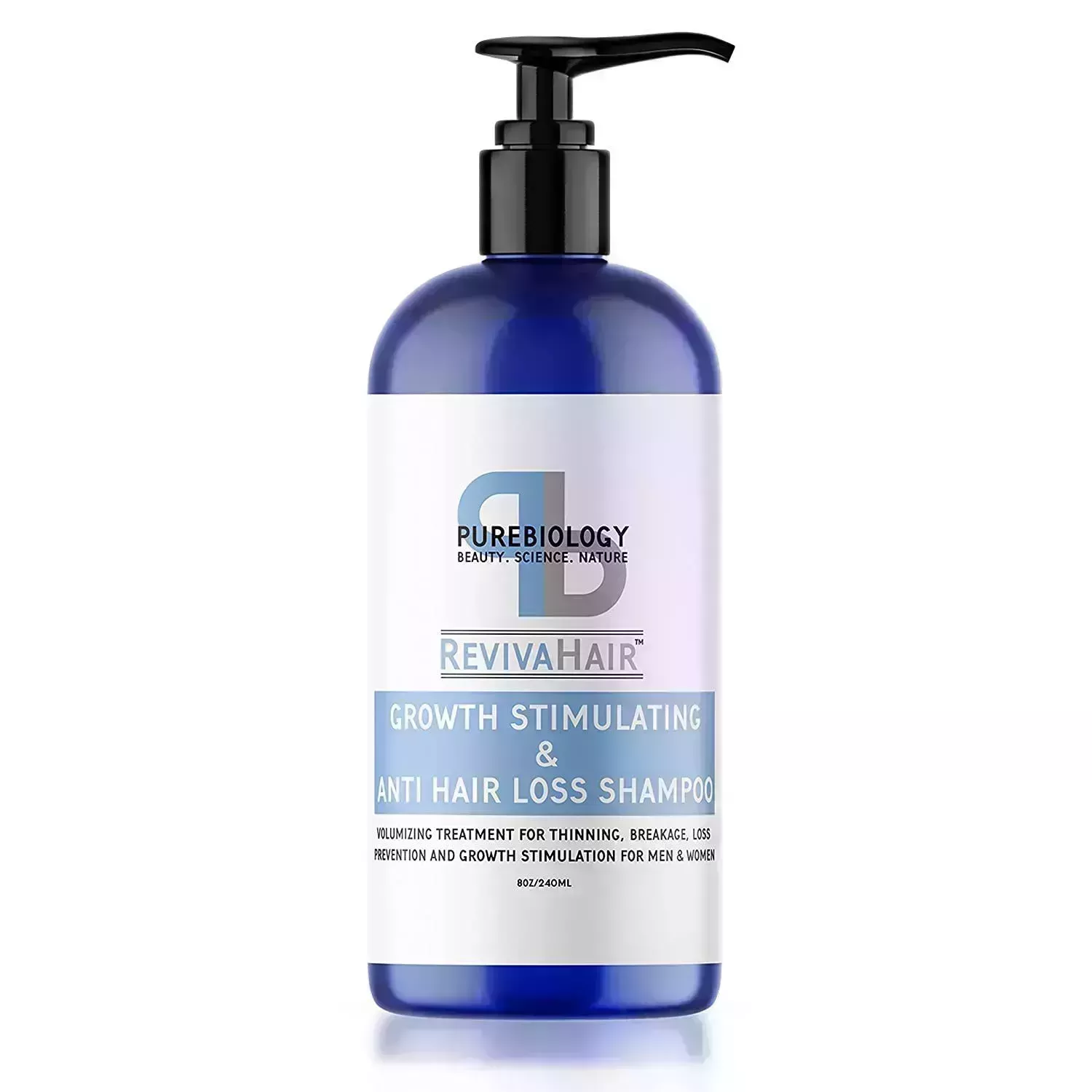 Uno de los champús mejor valorados de Amazon, la fórmula RevivaHair Growth Stimulating & Anti Hair Loss de Purebiology, está repleta de ingredientes activos para tratar el cabello debilitado o dañado. Los extractos naturales en el limpiador incluyen biotina y queratina que trabajan en conjunto para estimular el crecimiento del cabello.