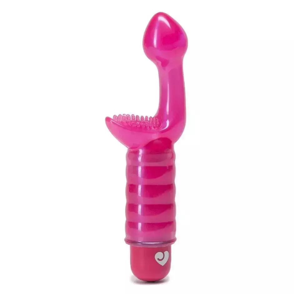 ¿Ves esas cositas que sobresalen en el centro? Ahí es donde el vibrador masajea tu clítoris, mientras la punta ligeramente puntiaguda golpea tu punto especial. El G-Tickler te ayudará a alcanzar el orgasmo rápidamente si estás acostumbrada a uno u otro.