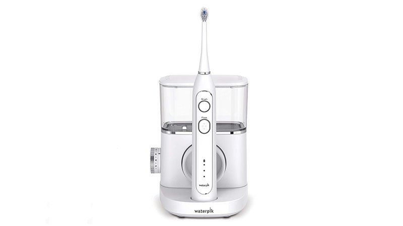 Lleve su rutina de salud oral de dos pasos a un solo paso con el cepillo de dientes Waterpik Sonic-Fusion Professional Flossing. Combina el poder del cepillado sónico con el hilo dental de agua. El cepillo se conecta a un depósito, que hace fluir el agua a través del cabezal especializado. Elimina la acumulación entre los dientes y a lo largo de la línea de las encías. Incluso puedes poner tu enjuague bucal preferido en el depósito para obtener la máxima sensación de frescura. Hay tres modos: cepillado, hilo dental o cepillado e hilo dental. Hay diez velocidades para la experiencia más cómoda y un temporizador de dos minutos con un marcapasos. También puedes llevarte el cepillo de dientes cuando estés en movimiento. Sólo tienes que desenchufarlo de la unidad y guardarlo en el práctico estuche de viaje.