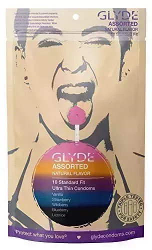 Este paquete de variedad de Glyde ofrece toneladas de sabores para elegir, incluyendo arándanos, regaliz y vainilla. Además, los preservativos están hechos de látex de caucho natural con sabores orgánicos y están certificados como veganos.