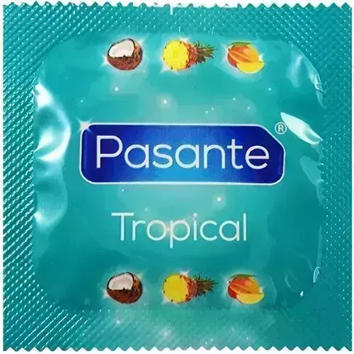 Viaja a algún lugar tropical con este preservativo con sabor a mango, coco y piña de Pasante. Fabricado con látex de caucho natural y con certificación CE de sus fabricantes europeos, seguro que te sentirás como en la playa en el dormitorio.