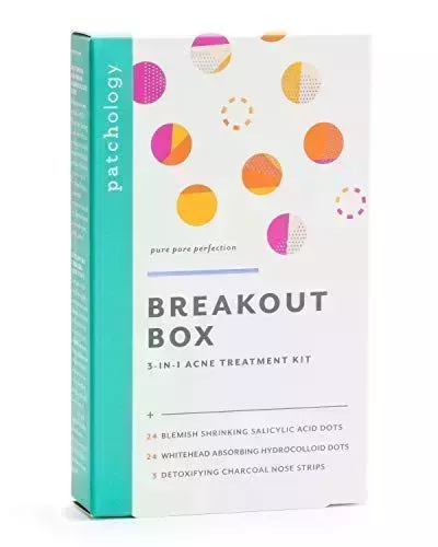 3 Patchology Breakout Box Kit de Parches para el Tratamiento de Granos y Manchas de Acné 3 en 1 con 3 tiras para la nariz, 24 puntos de ácido salicílico y 24 puntos hidrocoloides - Para hombres y mujeres - Parches para manchas oscuras en la cara