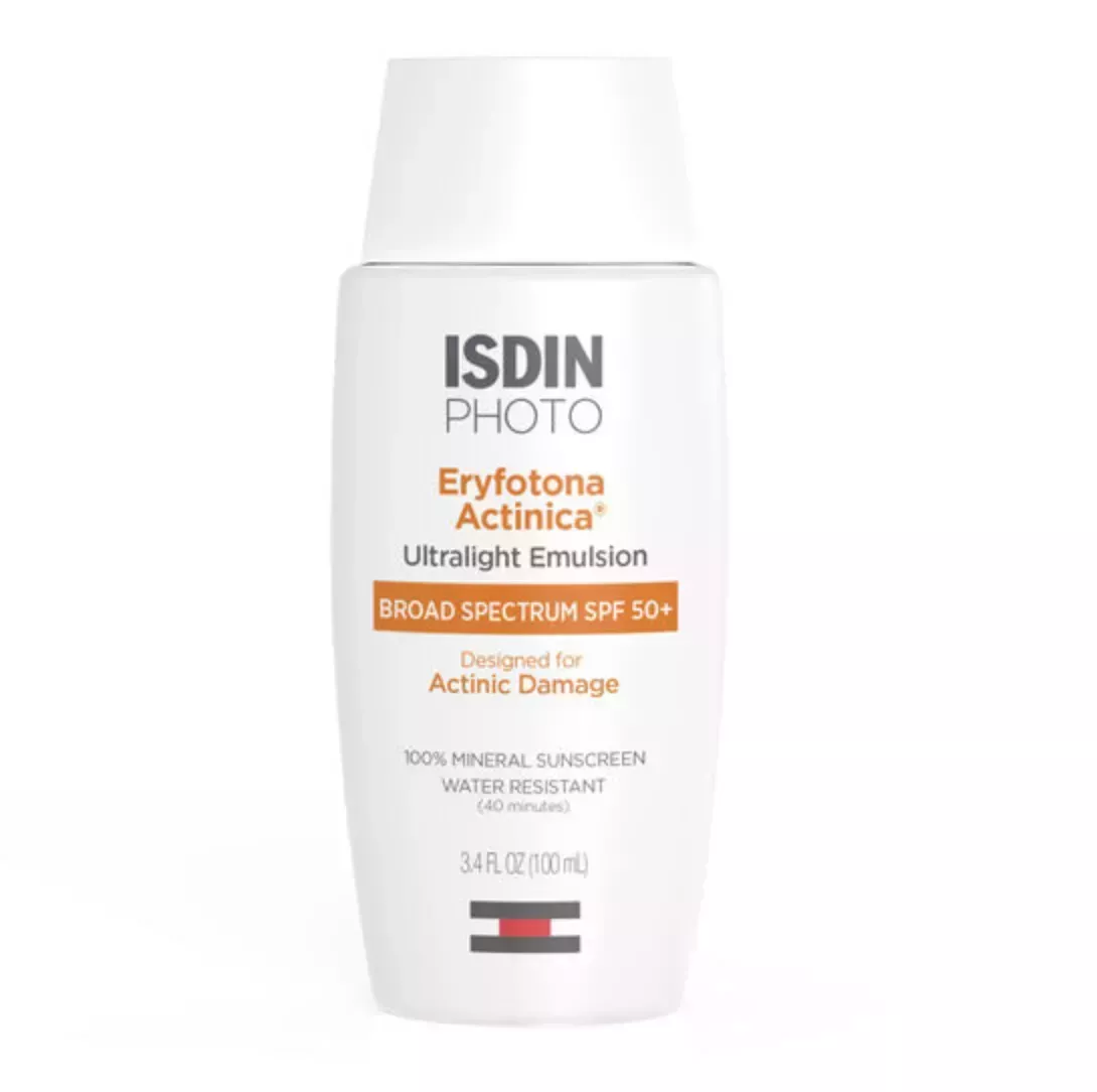 "Me gustan los protectores solares que no sólo protegen contra los rayos UVA/UVB, sino que también ofrecen beneficios adicionales para el cuidado de la piel, como Eryfotona Actinica de ISDIN, que combina un 11% de óxido de zinc para bloquear los rayos UV, reparadores de ADN -que ayudan a reparar el daño solar existente- así como vitamina E para proteger contra los radicales libres y el daño ambiental. Por no mencionar que tiene un FPS 50+" -Dr. Nussbaum