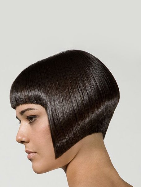 cortar el pelo en un ángulo para que la sección trasera sea más corta que la delantera. Esto crea un efecto graduado frío que siempre hace girar las cabezas. Uno de los cortes de pelo invertidos más populares y visualmente llamativos es una bobina invertida apilada corta. También llamado bob en línea A, este corte tiene ángulos más agudos que otros estilos invertidos. Es una elección audaz para las damas que quieren destacarse de la multitud sin dejar de verse elegantes, pulidas y profesionales.