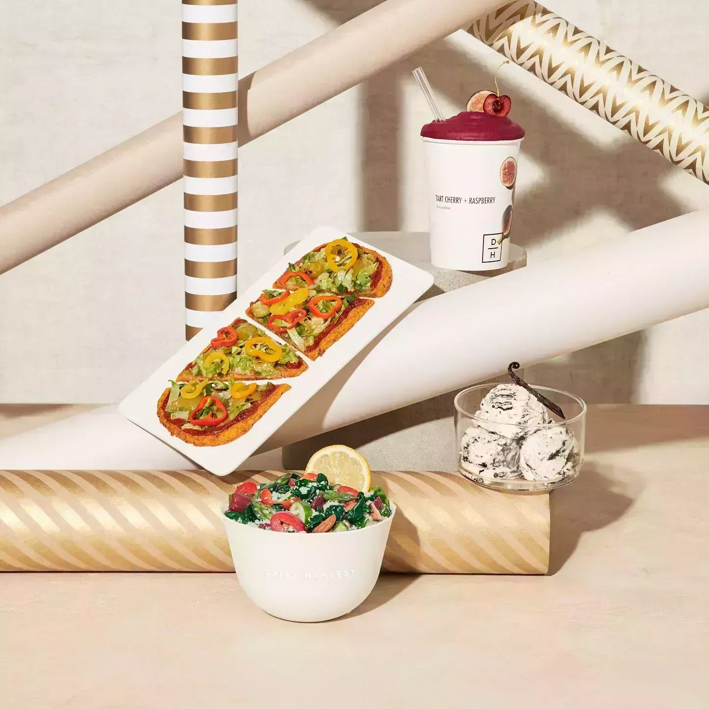 Si tu amante de la comida odia cocinar después de un largo día de trabajo (es comprensible), le encantará esta selección de cajas de regalo personalizadas de Daily Harvest. Con ella, puede elegir nueve productos del sitio (helado, pizza, cuencos de verduras, avena, batidos y más) para que se los envíen directamente a su puerta.