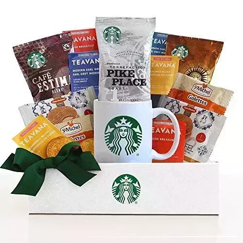 Esta es para tu amigo que no puede pasar ni una sola mañana sin parar en Starbucks para tomar su café con leche al despertar. En esta cesta de regalo con temática de café, encontrará las mejores cervezas de Starbucks, tés, golosinas e incluso una taza con el logotipo de SB.